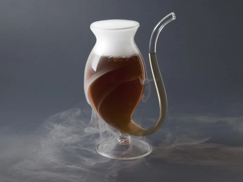 De 100% Chef Cat Cup glas op voet is gemaakt van borosilicaatglas. Het is organisch vormgegeven en staat op een voet waar een glazen drinkrietje aan zit. Gebruik het glas om drank spectaculair te serveren.