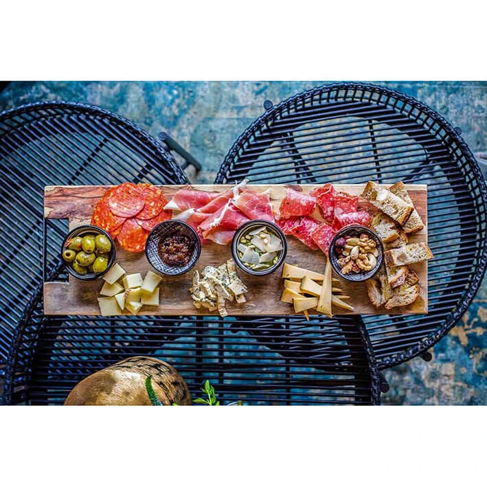 Bowls and Dishes Rose Wood rechte serveerplank met metalen handvat